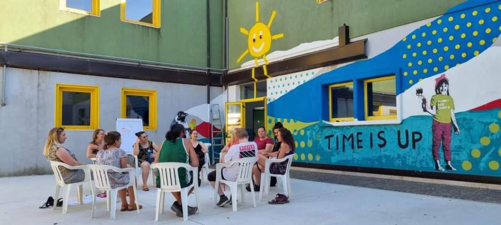 We learned about the characteristics and attributes of a facilitator and facilitation styles and the challenges we face when working with young people. We also had the opportunity to work outdoors, where the activities aimed to build trust between us and using creative writing and theatrical games we expressed our thoughts and feelings. One of the most interesting parts of the project was when we, the participants, changed into the role of facilitators. In small groups we prepared and conducted a workshop relevant to at least one of the topics: stress management, mental well-being, boost active participation, increase motivation in youth or youth workers. At the end of each workshop the facilitators and the group gave us feedback about the topic, the workshop and our role as facilitators, so that we can increase our facilitation skills and competences.