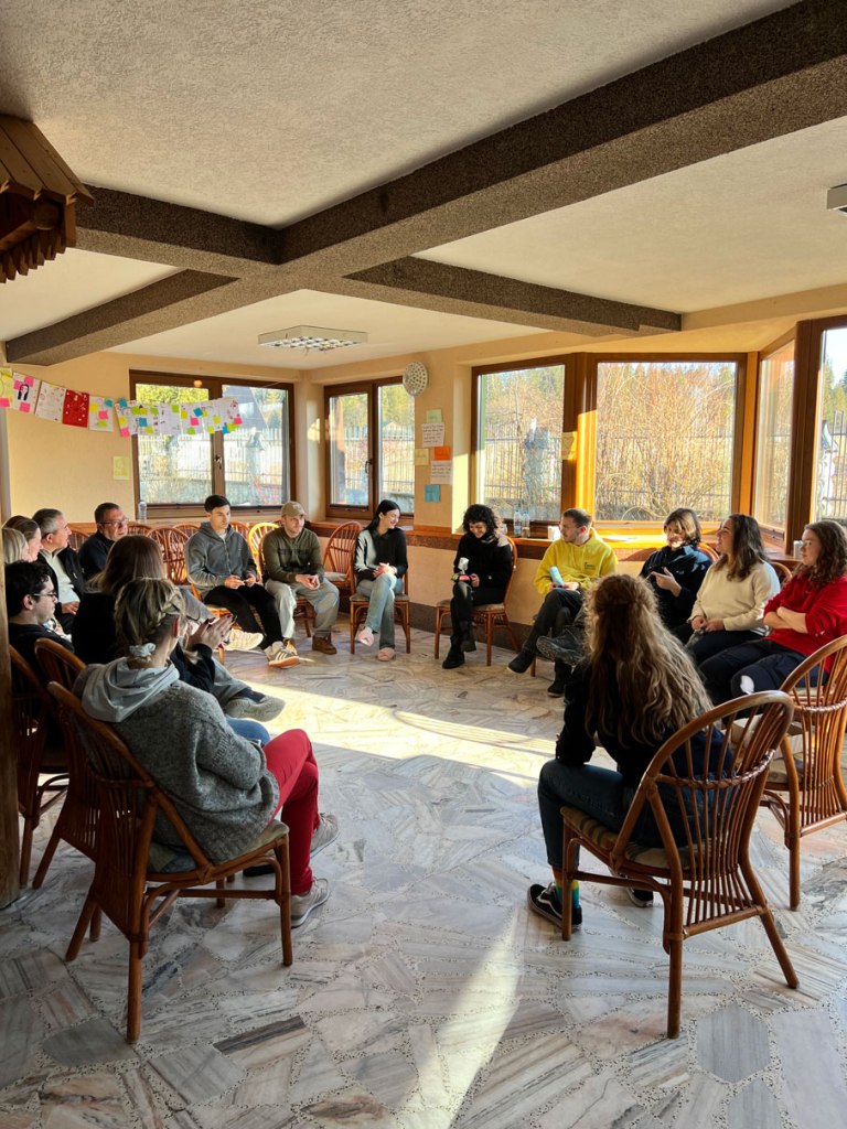 Στο πρώτο μέρος εκεί είχαμε την ευκαιρία να διδαχθούμε καινοτόμες και πρωτοποριακές μεθόδους για την διοργάνωση και παρουσίαση ενός εκπαιδευτικού προγράμματος. Γνωρίσαμε τα υπόλοιπα μέλη του προγράμματος, από Πολωνία, Βόρεια Μακεδονία, Τουρκία, Λετονία, Πορτογαλία. Τις επόμενες μέρες, μέσα από ασκήσεις improv αφήσαμε βήμα βήμα τη φαντασία μας ελεύθερη, αναπτύξαμε την ενσυναίσθησή μας μέσα από ασκήσεις role-playing, συζητήσαμε για τους τρόπους με τους οποίους μπορούμε να αντιλαμβανόμαστε αν κάποιο άτομο σε ομάδες που βρισκόμαστε χρειάζεται υποστήριξη, ως προς την ψυχική του υγεία και τους τρόπους που μπορούμε να προσφέρουμε αυτή την υποστήριξη. Ιδιαίτερο ενδιαφέρον είχαν τα energizers και γενικότερα οι δραστηριότητες που πραγματοποιήθηκαν σε εξωτερικό χώρο, καθώς όλες τις ημέρες που ήμασταν εκεί, το χωριό και τα γύρω βουνά ήταν χιονισμένα. Την τελευταία ημέρα, χωριστήκαμε σε ομάδες με τις οποίες δουλέψαμε στο διάστημα μεταξύ των δύο κινητικοτήτων, μέσα από κλήσεις και chat.